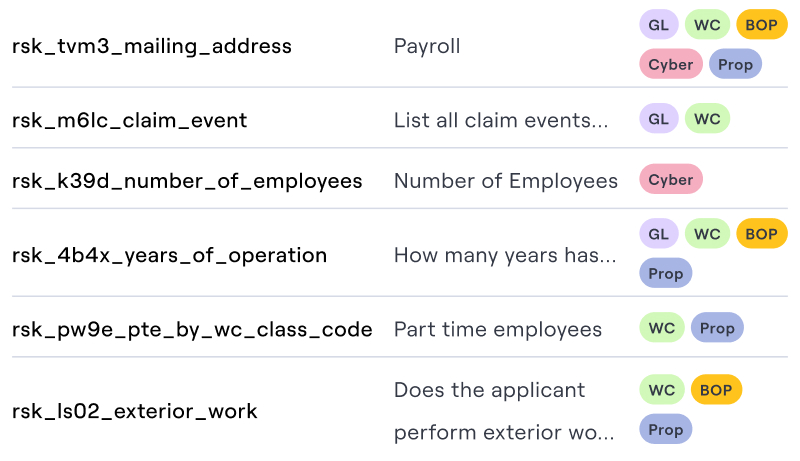 The full library of questions associated with an application.